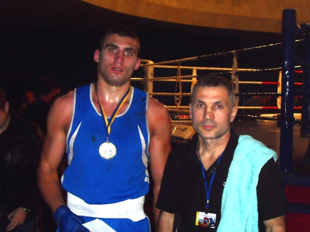 Чемпион в супертяжёлом весе Виктор Выхрист с тренером Александром Ляховым.
