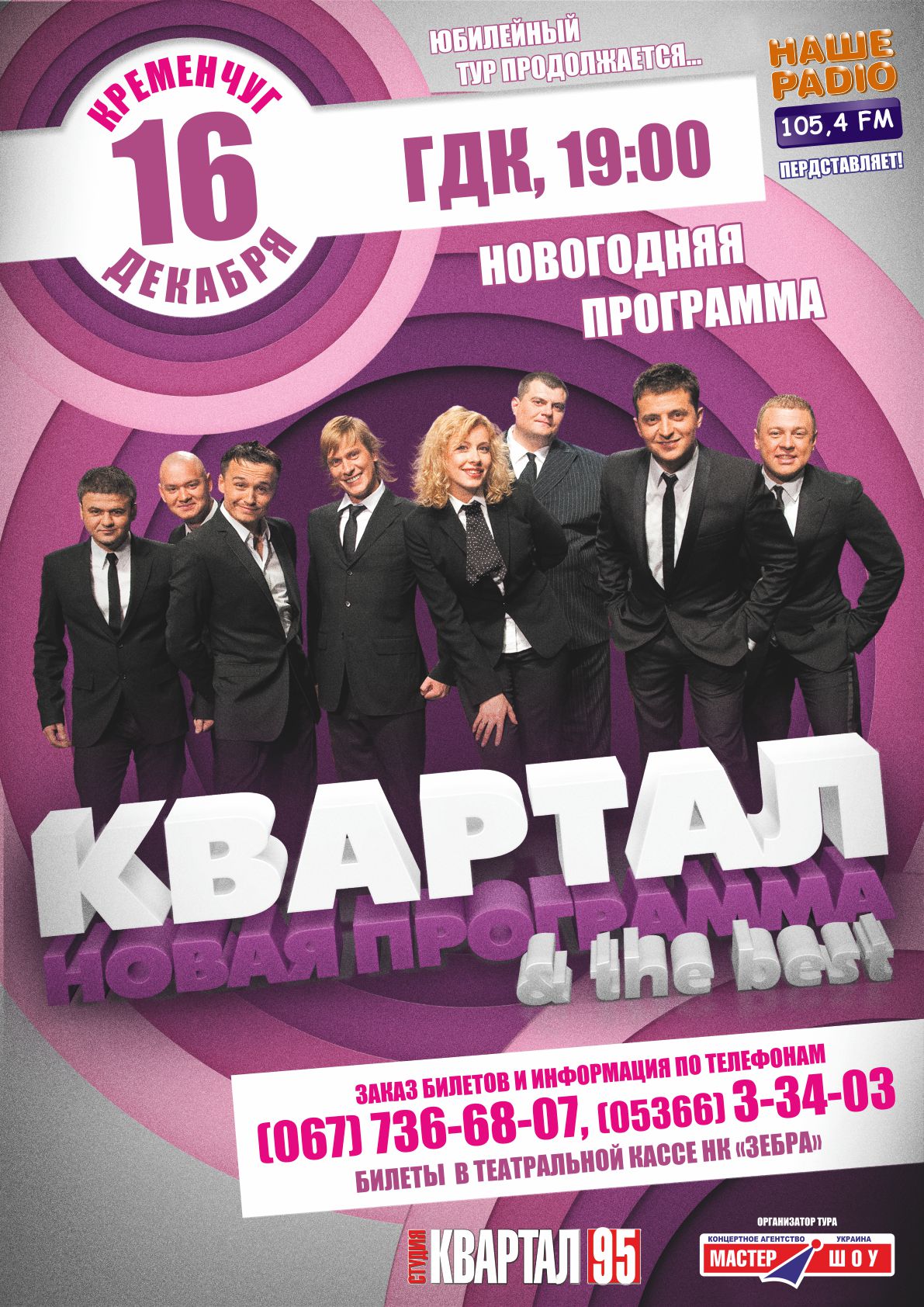 16 декабря в Кременчуг приедет «95 Квартал». Зеленский и Ко выступят с новогодней программой, которая включит в себя новые, полюбившиеся зрителям, номера.
