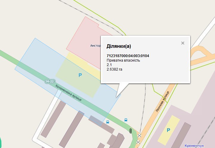 К примеру, на карте Кременчуга в частную собственность (голубое поле) «вписали» часть дороги на ул.Халаменюка, в то же время «Амстор» не вошел в «голубой квадратик».