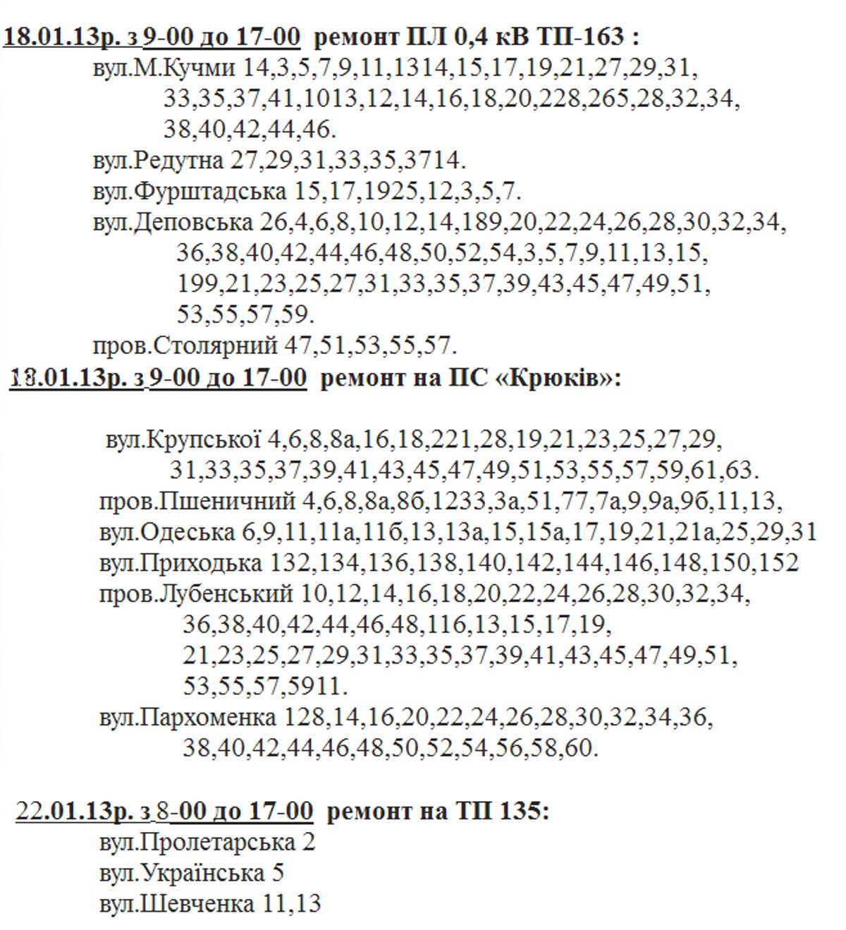 Во второй половине января в Кременчуге будут отключать электроэнергию из-за проведения ремонтных работ. Об этом сообщили в пресс-службе мэрии.