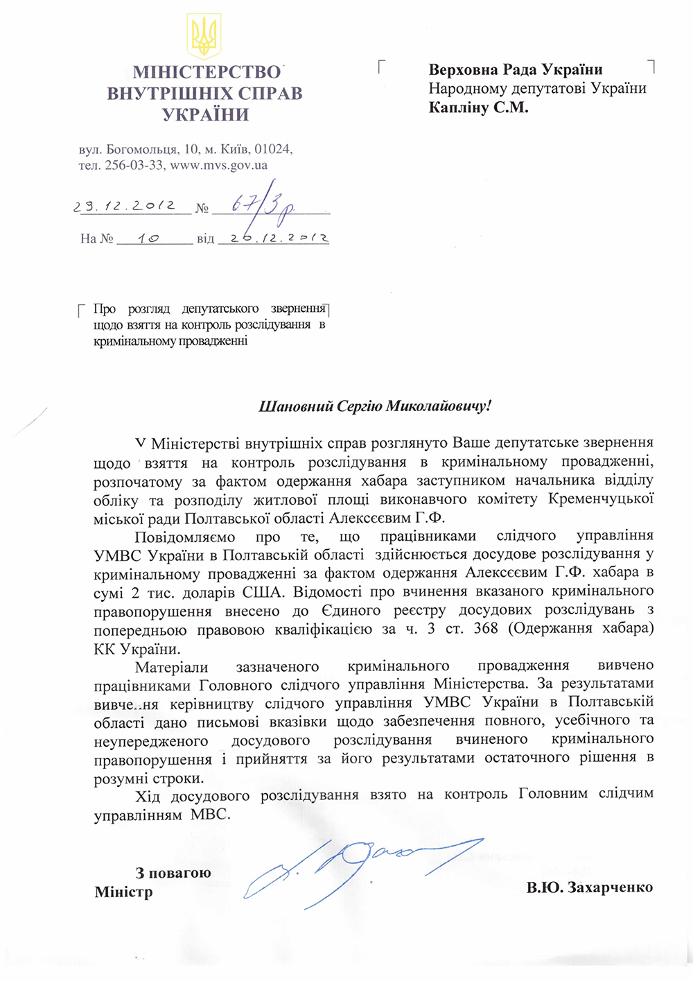 Официальные документы из МВД и СБУ