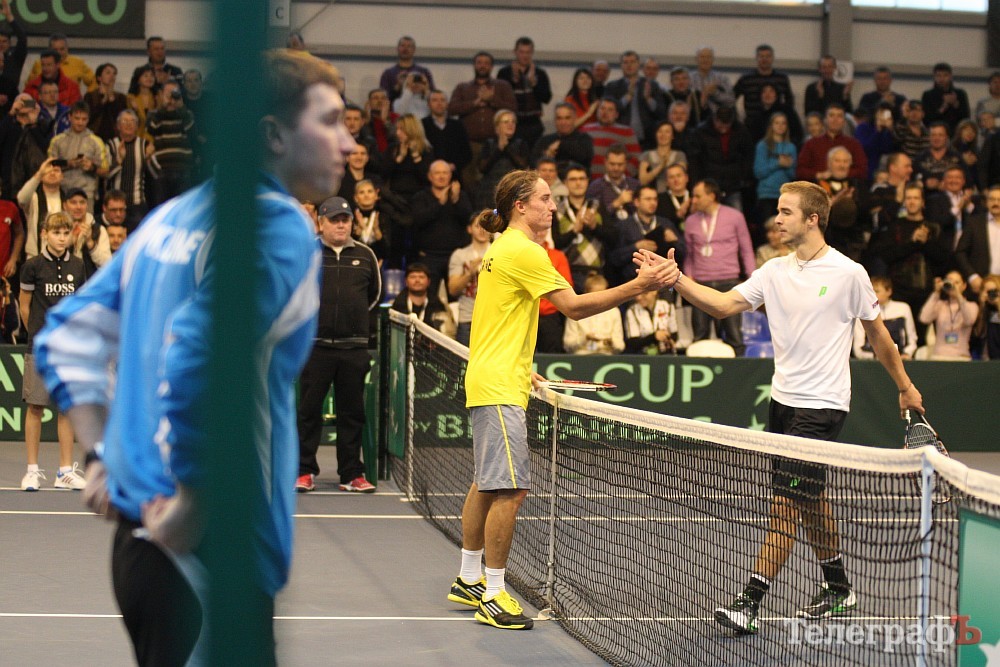 Открывал матч сборных Украины и Словакии поединок между первой ракеткой Украины Александром Долгополовым и Андреем Мартином. Отсутствие лидера словаков Мартина Клижана сыграло на руку нашей сборной, и Долгополов, с сентября 2007 года не игравший на Кубке Дэвиса, без проблем разобрался с Мартином за полтора часа.