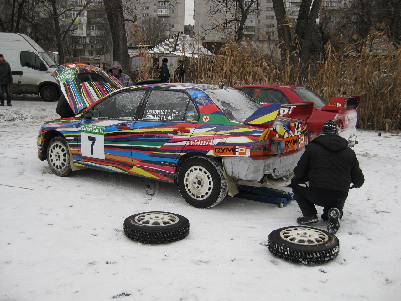 - Случайно попал на эти гонки. Там вроде даже Шаповалов гонял на Mitsubishi. Фото ниже в красной курточке, - написал нам в редакцию читатель Олег.