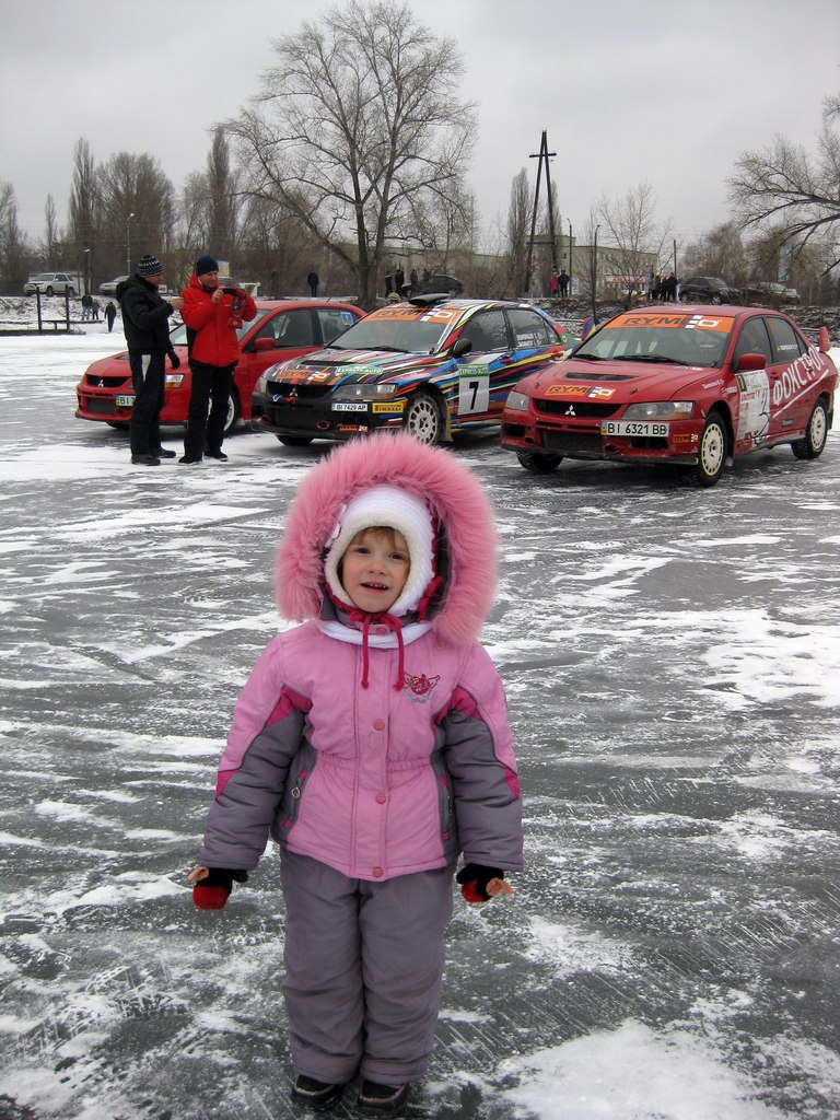 3-летняя Лиза тоже пришла посмотреть, как взрослые дяди ездят на машинах по льду
