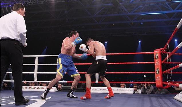 Дебютант нашей команды серебряный призер чемпионата Мира-2011 и Олимпиады-2012 Денис Беринчик в категории 68-73 кг эффектно появился в ринге в красных шароварах, папахе с атаманской булавой и шашкой наголо. Имиджевый образ был подкреплён зрелищным боем, и уверенная победа над пятикратным чемпионом Германии Артуром Шмидтом тому доказательство. В четвертом раунде после серии из пяти быстрых и сильных ударов Беринчик сделал стоячий нокдаун, но до нокаута дело так и не дошло. Как итог – победа украинца со счётом 3:0 (50:44, 50:44, 50:44).