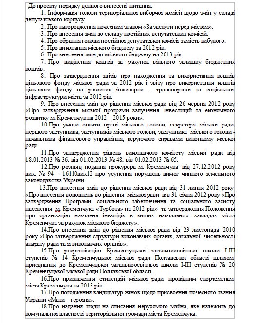 Очередная сессия кременчугского горсовета пройдет 26 февраля. Об этом сообщает пресс-служба мэрии. Всего на сессию выносится более 30 вопросов.