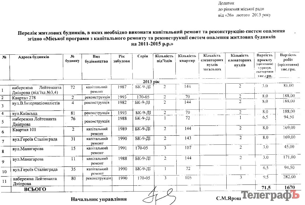 - Согласно существующей программе, капремонт и реконструкцию должны делать в 18-20 домах, объясняет начальник управления ЖКХ Сергей Ярош. Однако в этом году сделают ремонт лишь в 11 - на столько хватит средств.