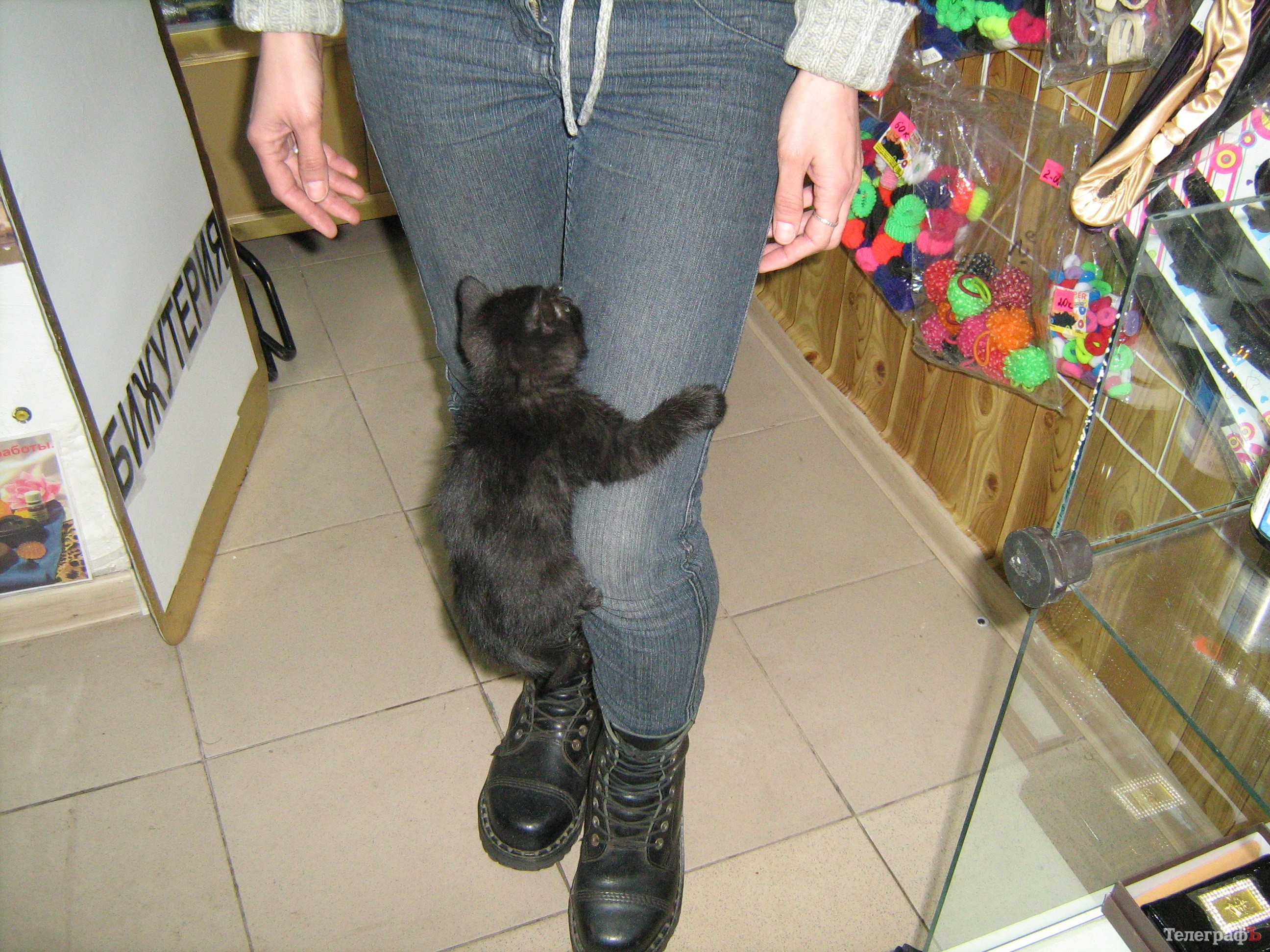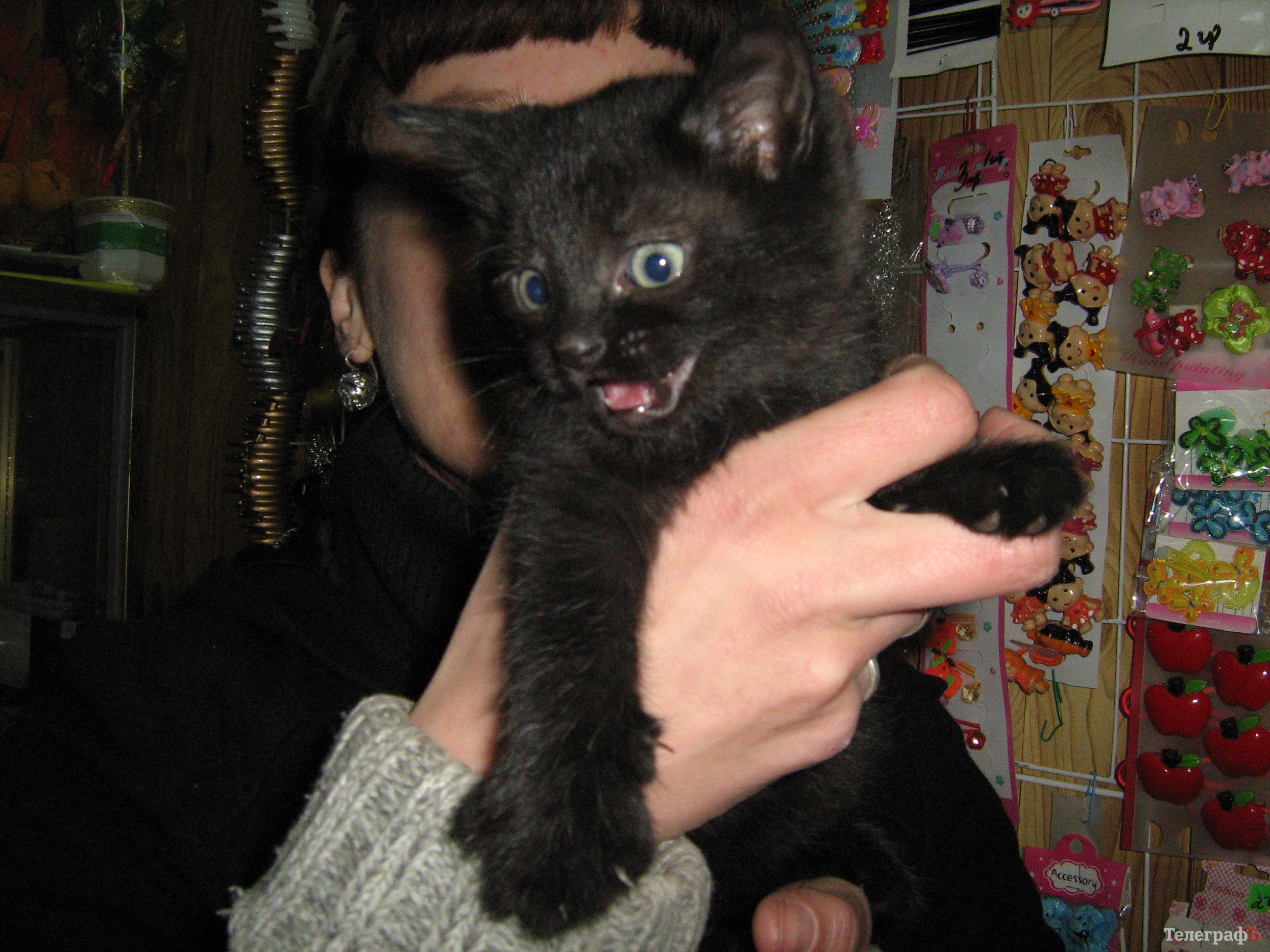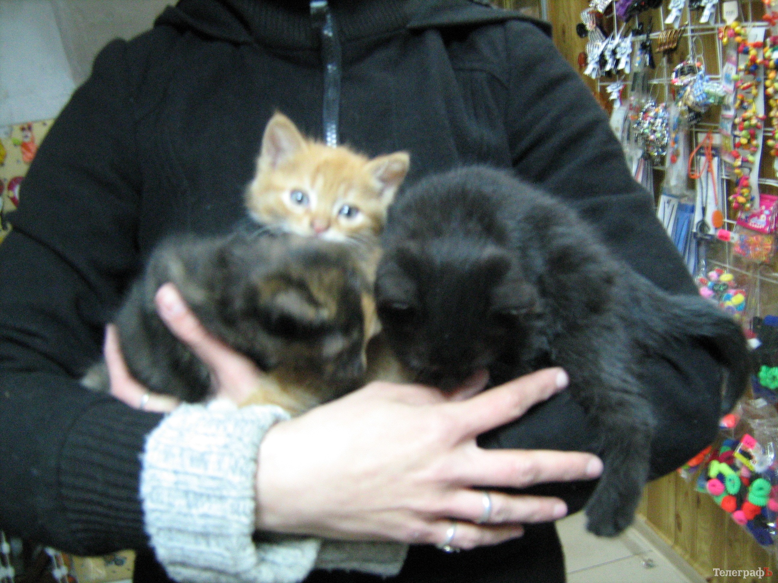 Так домашняя кошка оказалась зимой на улице. И, к тому же, беременной. Где она родила котят, никто не знает. Но однажды вечером, в феврале, хозяйка маленького магазинчика сувениров на улице Ленина нашла на ступеньках кошку с крошечным котенком. Девушка – ее зовут Яна – пустила кошку с котенком на ночевку в магазин. А кошка поела и куда-то смылась. Вернувшись, притащила еще двух котят. Хозяйка магазинчика приютила их всех в закутке за трубой. Там они дожили до весны. Теперь котята подросли, крошечный магазинчик сувениров, который сам размером не больше грузового лифта, их уже не вмещает. Котятам пора искать постоянное место жительства. Как говорится, у их мамы судьба не сложилась, хотелось бы, чтобы дети устроились получше.