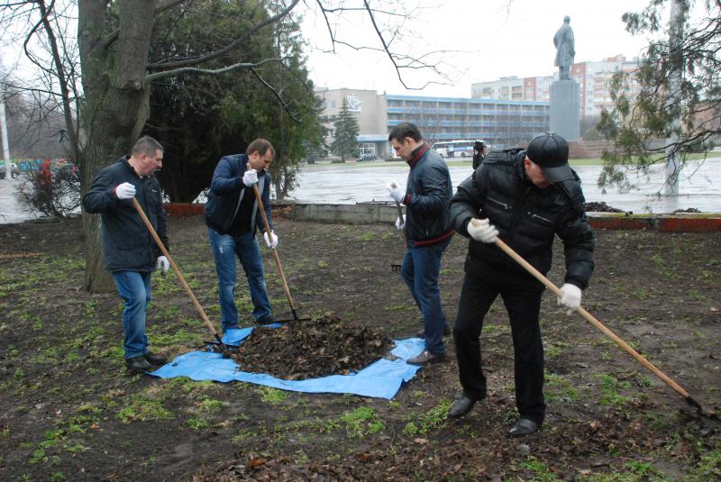 Кроме городского головы в уборке приняли участие и его заместители Андрей Погребной, Виктор Калашник, Валерий Медведовский, Татьяна Неиленко, Виталий Малецкий, секретарь горсовета Василий Ивко, руководящий делами Руслан Шаповалов, руководитель аппарата городского головы Александр Головач, заведующие структурных подразделений исполкома и др.