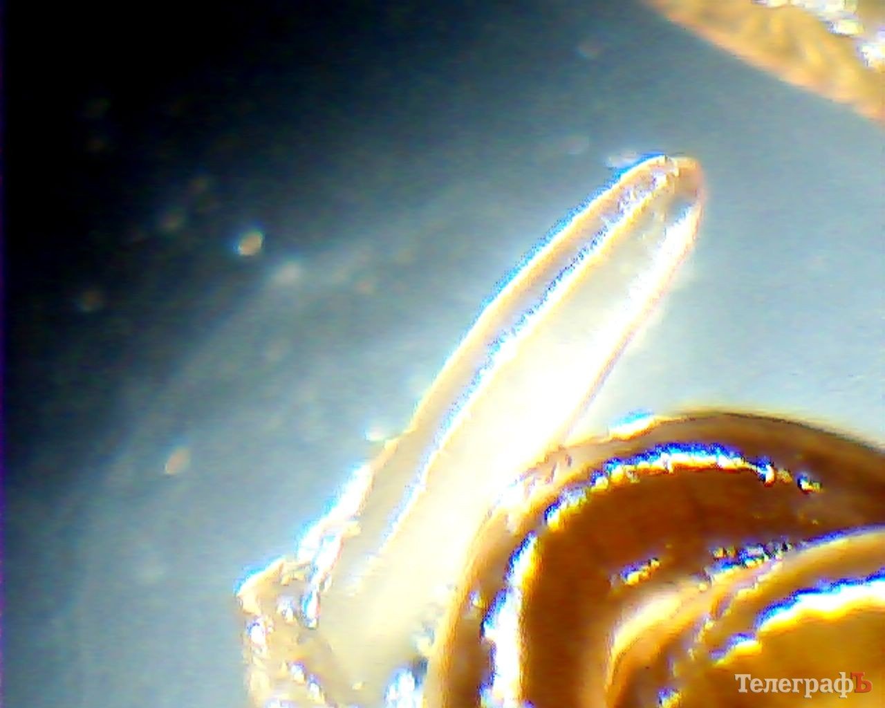 Червь-паразит Eustrongylides excisus под микроскопом. Для Украины он не новый – его постоянно находят в рыбе, выловленной на юге страны. Много его в бычках. Рыба для паразита является временным «домом», а постоянное место жительства у него – водоплавающие птицы.