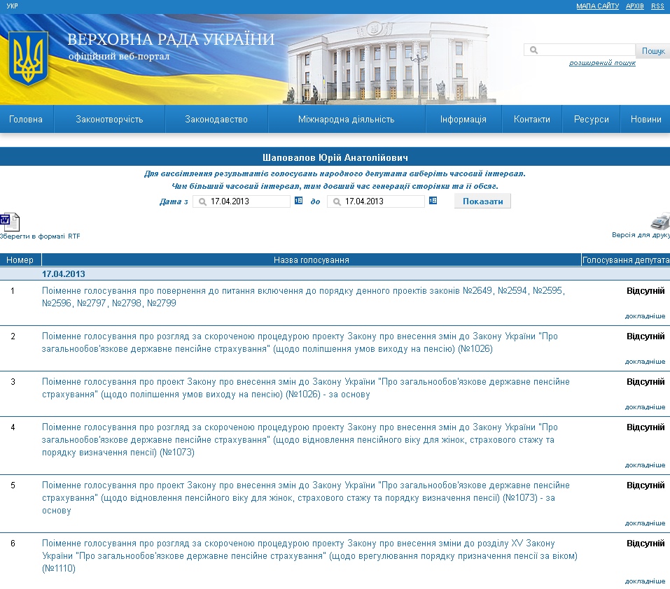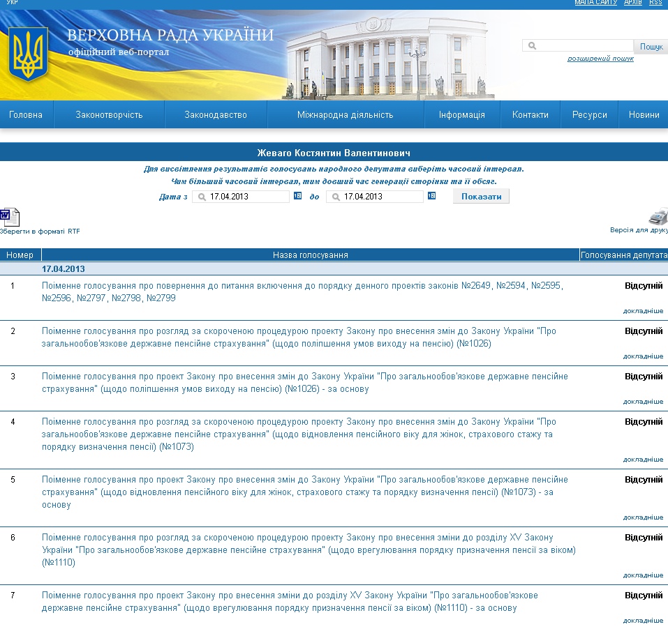 Верховная Рада Украины сегодня, 17 апреля, не поддержала проект закона о внесении изменений в закон ”Об общеобязательном государственном пенсионном страховании” (относительно улучшения условий выхода на пенсию), предложенный народным депутатом Сергеем Мищенко (внефракционный).