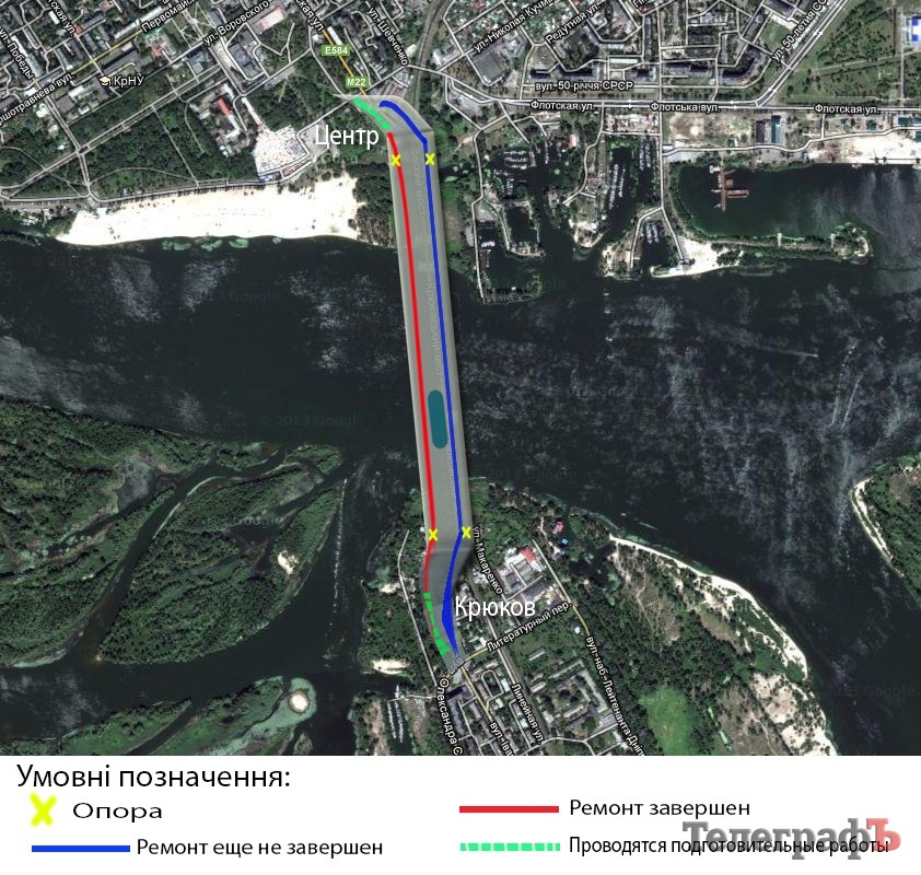 Сегодня, 23 мая, коммунальники начали красить колесоотбойники на Крюковском мосту. Покраска — это часть ремонтных работ.