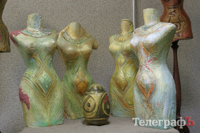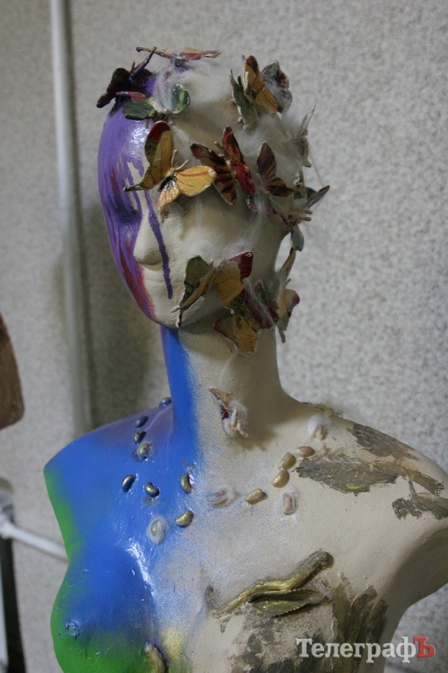 На открытии экспозиции художница и арт-дизайнер Татьяна Шаповалова представила 50 скульптур-манекенов и коллекцию акварельных картин, а кременчугский художник Вадим Каторгин вместе с журналистами «Телеграфа» устроил перформанс «Мумия»