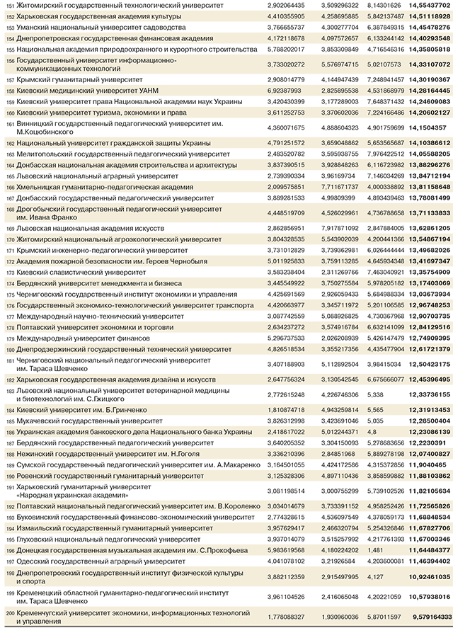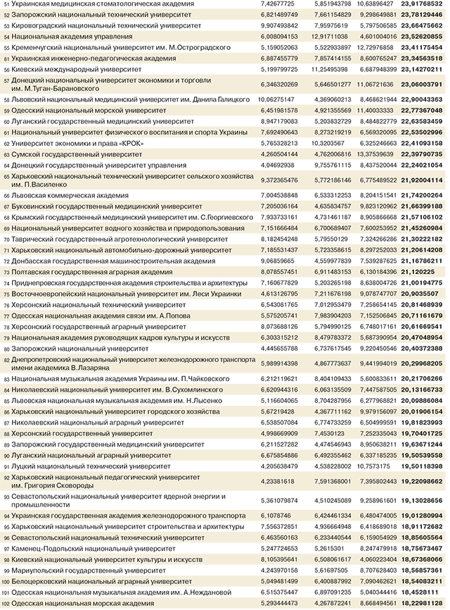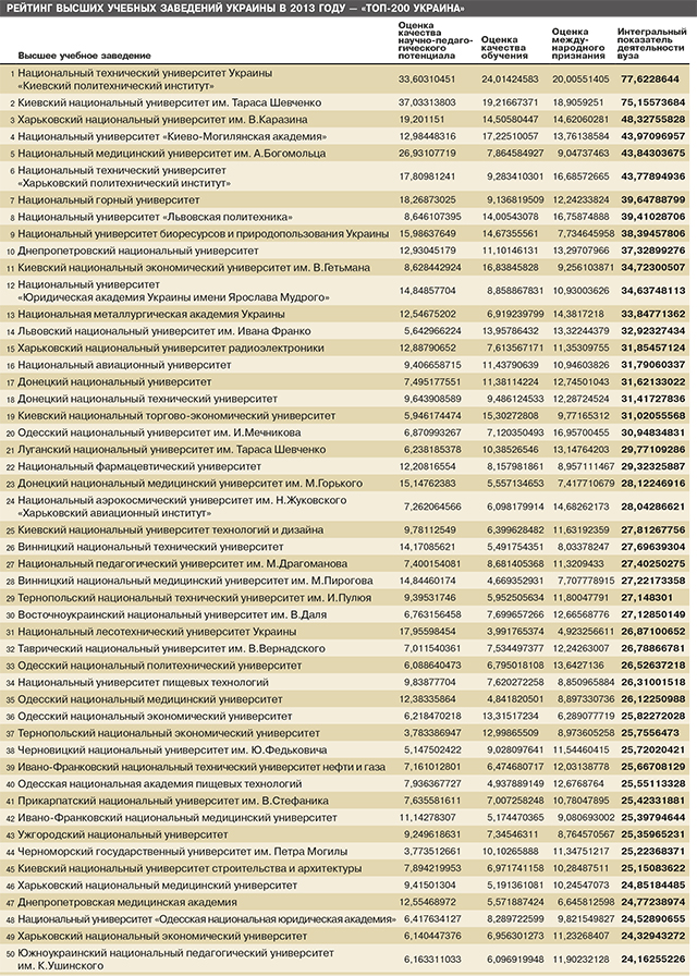В течение нескольких лет абсолютными лидерами среди вузов Украины остаются Национальный технический университет Украины «Киевский политехнический институт» и Киевский национальный университет им. Т.Шевченко.
