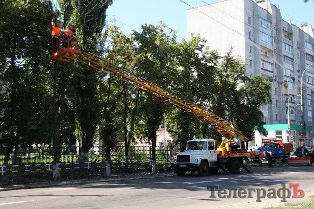 Коммунальщики по улице Красина рубят отмирающие каштаны, которые в прошлом году цвели два раза. Ранее «Телеграф» по улице Красина (возле школы №19) и по улице Пролетарской насчитал более десятка увядающих и уже засохших деревьев. После статьи на нашем сайте и в газете мэр Кременчуга Олег Бабаев заявил, что сухостой будет срублен.