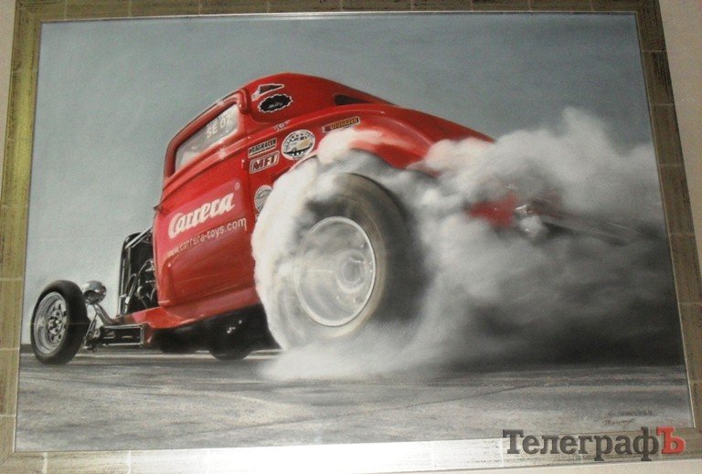 – Автомобили мне нравятся – муж занимается модернизацией обычных и раритетных автомобилей. Правда сейчас он ребенка больше привлекает к этому делу. Да и просто автомобили меня вдохновляют. Мы присутствуем на разных мероприятиях – драг-рейсинг, ралли, поэтому рисую автомобили, – рассказала «Телеграфу» художница.