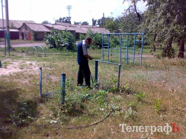 Кременчужане, жители ул Приходько, прислали в редакцию письмо с фотографиями — как работники управляющей компании «Добробыт» спиливают элементы детской площадки.