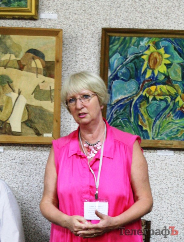 Кроме организаторов, гостей и кременчугских студентов-художников презентовала свои работы на выставке и художница нашего города, выпускница студии А. Арламовой Валентина Крамаренко – ее пейзажи украшали одну из колон зала. А также - директор Дворца культуры в Кременчуге, руководитель Кременчугского Троицкого театра Сергей Ситник: