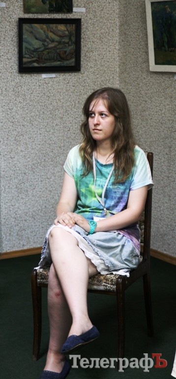 Первой представили невысокую черноволосую девушку с татуировкой змеи на руке – Рамону Анну Хааз. Девушка неплохо говорит по-русски, и помогала кременчугским переводчикам справляться с языковыми трудностями в общении. По словам А. Арламовой у девушки очень хорошие способности к рисованию живописи и портретов, также она проявила себя и в искусстве фотографии.