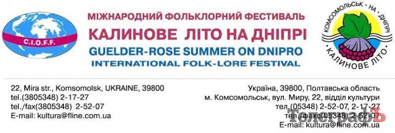 В Комсомольске с 20 по 25 августа пройдет ХІІI Международный фольклорный фестиваль «Калинове літо на Дніпрі». Его участниками станут 11 коллективов из 9 стран мира (Индонезии, Республики Северной Осетии, Алании, Словакии, Польши, Латвии, Турции, Португалии, Испании, Украины).