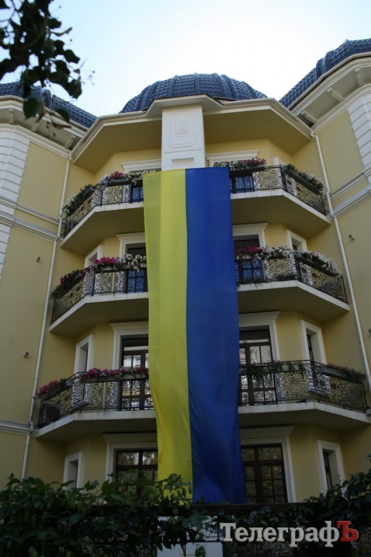 Ко Дню флага и Дню Независимости один из домов по ул. Бутырина украсили государственным флагом. Флаг растянули с верхнего этажа — до нижнего.