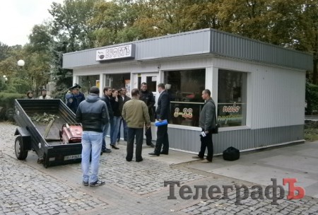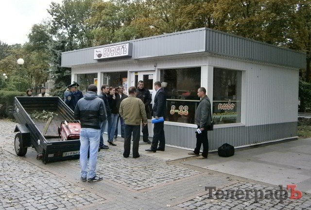 Сегодня, 5 сентября, в 8.00 утра работники коммунального предприятия «Благоустройства Кременчуга» в сопровождении чиновника из горисполкома пришли выполнять решение о сносе торгового павильона «Буфет» (расположен на ул.Ленина напротив Дома торговли). Их сопровождали милиционеры.