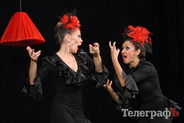 В исполнении кременчужан пьеса выглядит стильно: интерьер и одежда актеров строго в трех цветах: черном, красном и белом. А в саму пьесу режисер Максим Воробьев привнес еще больше абсурда.