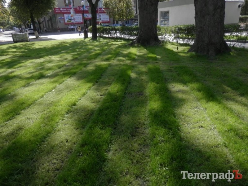 В Кременчуне в сквере Октябрьский появились стриженные полосами газоны, их вид навевает мысли о геометрических фигурах и концентрических кругах на траве, которые приписывают вмешательству инопланетян. Стричь газоны по-новому решили кременчугские коммунальники.