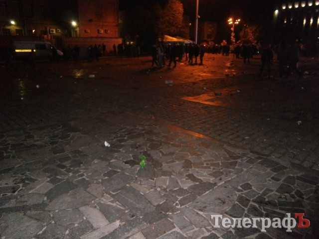 Сегодня к утру площадь убрали. Сейчас дворники работают в близлежащих к площади дворах и парке «Приднепровский», где любая горизонтальная поверхность вчера становилась импровизированным столом для празднования Дня города.
