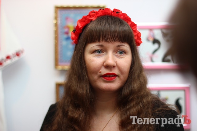 - Вышиваю всего год, – рассказывает одна из авторов выставки, Юлия Правда. - Я медработник по образованию, но сейчас дома и вышивать могу по 5-10 часов в день. Для меня это - как работа. В этом году мои муж и дочь участвовали в кременчугском Параде вышиванок (вышитых сорочек). А потом мы на «Телеграфе» прочитали, что кременчужане будут ехать в Киев на парад, и буквально за три дня тоже попросились к ним.