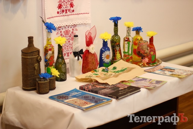 Кроме сорочек и картин кременчужанка принесла рушники и украшенные декупажем бутылки, которые делала она, ее дочка и ее мама.