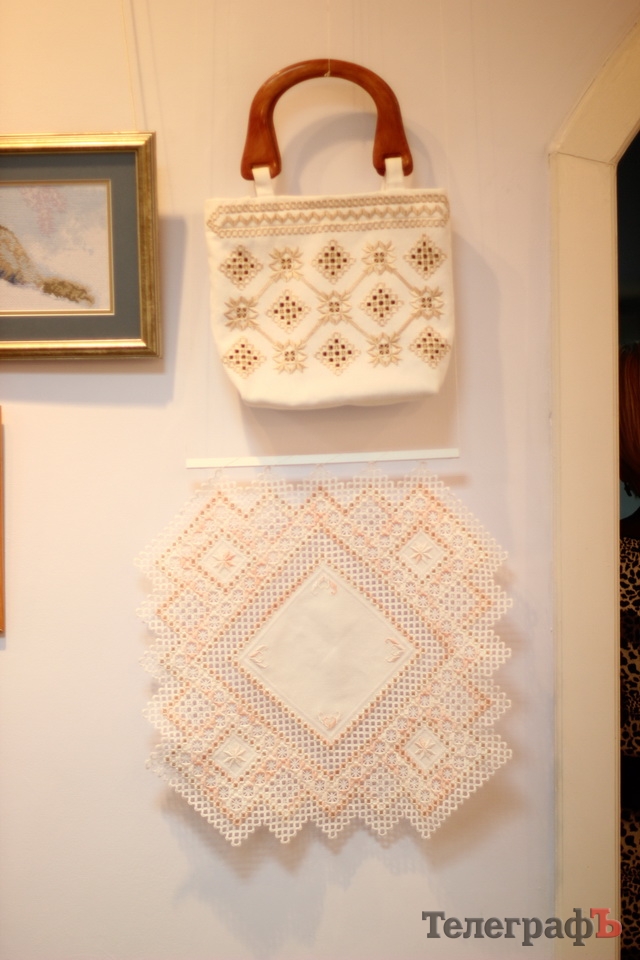 - Это был мастер-класс по вышивке в технике «хардангер». На выставке представлены две работы, выполненные в этой технике - салфетка и сумочка. (Изделия очень похожи на кружевные, но это не кружево – авт.) По другому «хардангер» называют еще и «счетной гладью». Изначально пошла эта вышивка из Норвегии - от названия одноименного фьорда. И хотя в стиле «хардангер» есть элементы азиатской и египетской и индийской вышивки, но сама техника несложная- сумочку я вышила за 2 недели, а салфетку за полтора месяца.