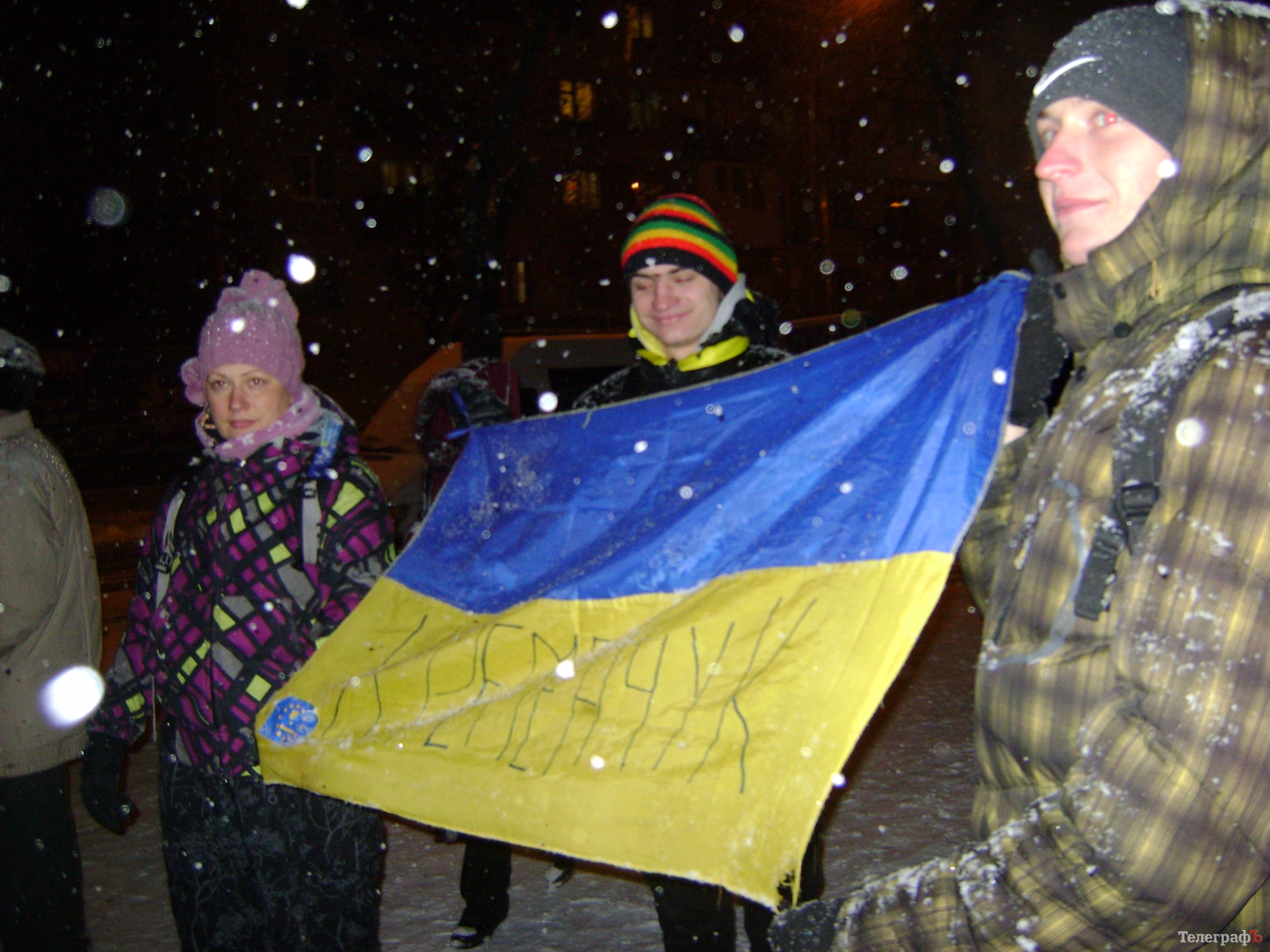 - Я только недавно вернулась с Евромайдана и почувствовала всю его энергетику. Народ хочет воли, свободы. С этим флагом мы ходили к Мариинскому дворцу» (в том месте стоят сторонники Партии регионов – ред.). Увидели там такой маленький плакатик «Кременчуг». Хлопцы стояли в шапках, надвинутых на лоб, и боялись показать лица. Стояли они и «Беркут». Мы стали напротив.