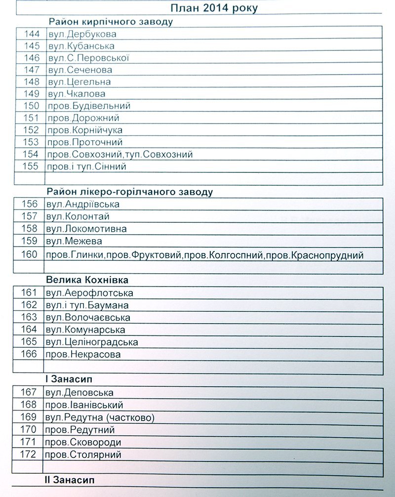 В 2014 году коммунальное предприятие «Горсвет», согласно утвержденной в 2010 году программы «Свет», планирует заняться освещением улиц в районе кирпичного завода, ликеро-водочного завода, в Большой Кохновке, на Первой и Второй Занасыпях, а также в Крюкове.