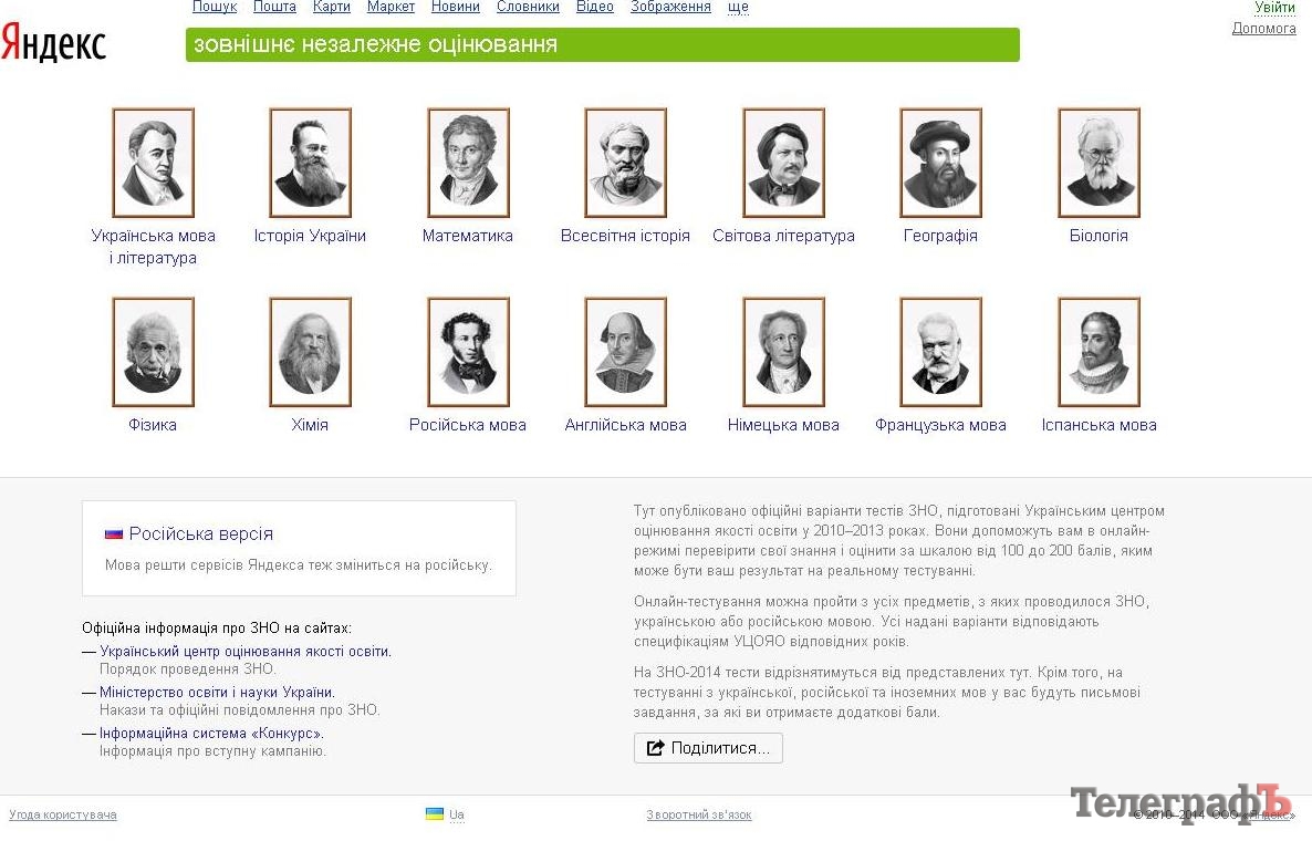 Интернет-ресурс по подготовке к ВНО функционирует на портале www.yandex.ua