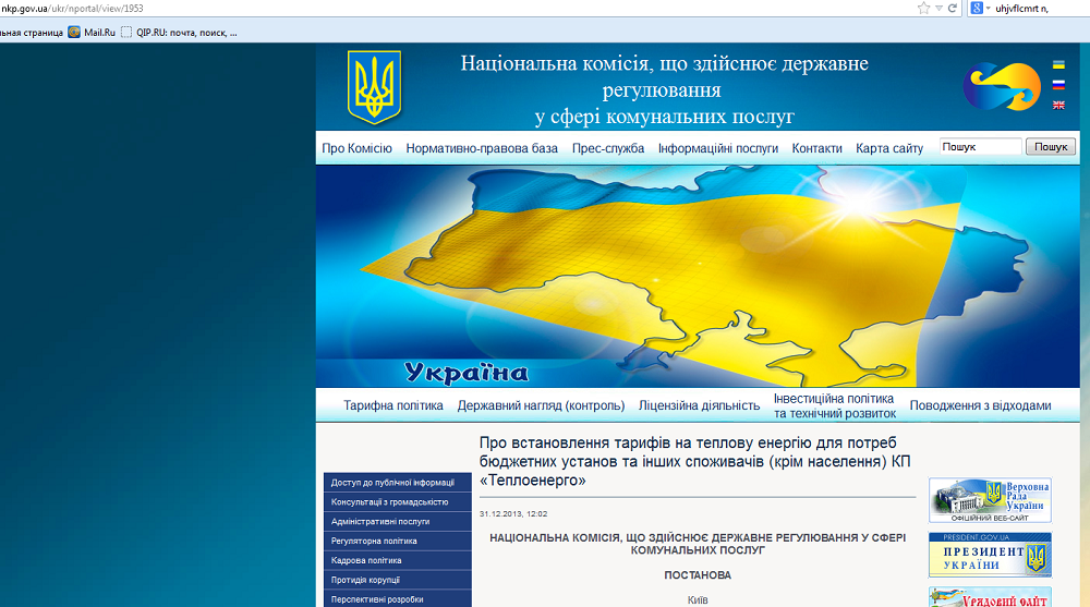Как сообщает пресс-служба коммунального предприятия, 31 декабря 2013 года Национальная комиссия, осуществляющая регулирование в сфере коммунальных услуг, выдала Постановление № 354 «Об установлении тарифов на тепловую энергию для нужд бюджетных учреждений и других потребителей (кроме населения) КП «Теплоэнерго».