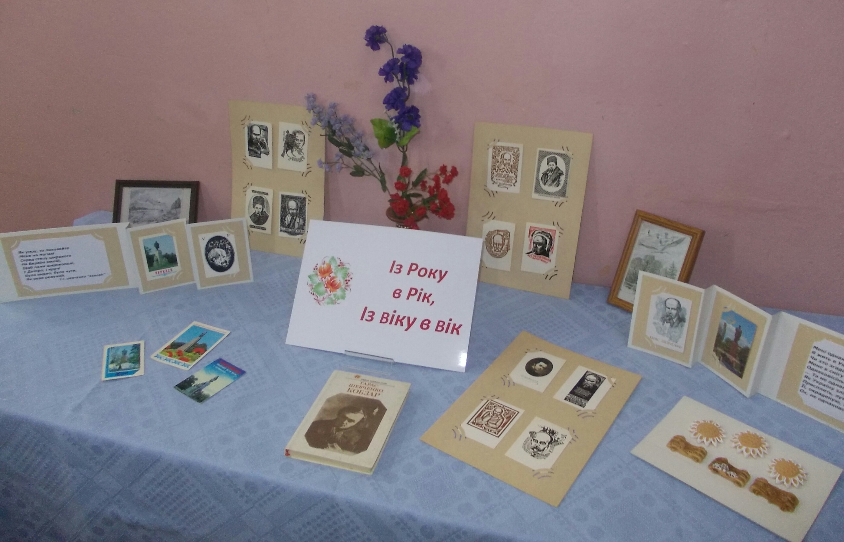 На днях в помещении библиотеки по адресу Ленина 11, открыли мини-выставку календариков с изображением великого украинского писателя Тараса Шевченко «Из года в год из века в век».