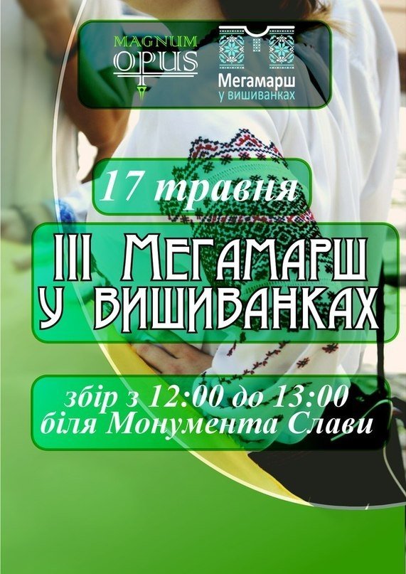 Кременчужане могут поучаствовать в III Мегамарше в вышиванках, который проводится в большинстве городов Украины и даже в Лондоне, Торонто и Мозамбике.