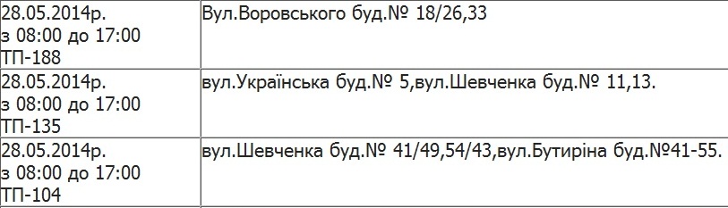 В частности завтра, 28 мая, запланированы отключения света в районе следующих улиц Кременчуга: