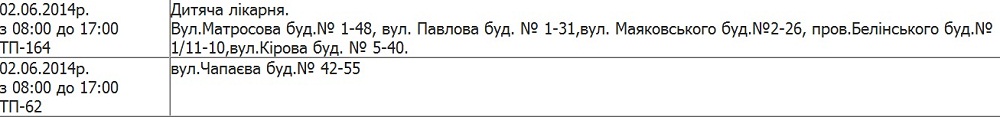 В частности завтра, 2 июня, запланированы отключения света в районе следующих улиц Кременчуга:
