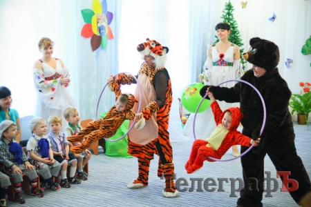 Дети встретили гостей сказочным представлением и все собравшиеся окунулись в сказку «Маша и медведь». Во время сказки воспитанники Дома ребенка выполняли акробатические номера, показывали фокусы, играли на музыкальных инструментах, танцевали, пели и рассказывали стихи. Каждый из них получил сладкий подарок, а Дом ребенка - технику, оборудование и детское питание.