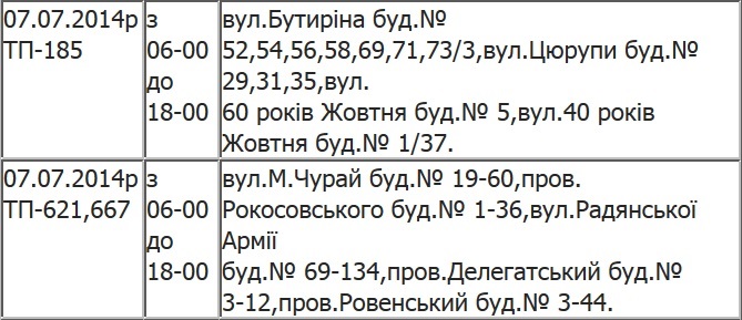 График отключений "Полтаваоблэнерго"