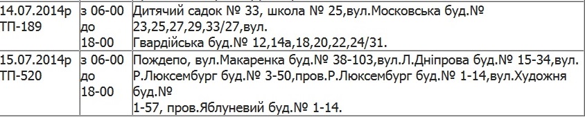 В Кременчуге в понедельник-вторник "Полтаваоблэнерго" будет проводить ремонтные работы. В связи с этим возможны перебои в энергоснабжении по таким адресам: