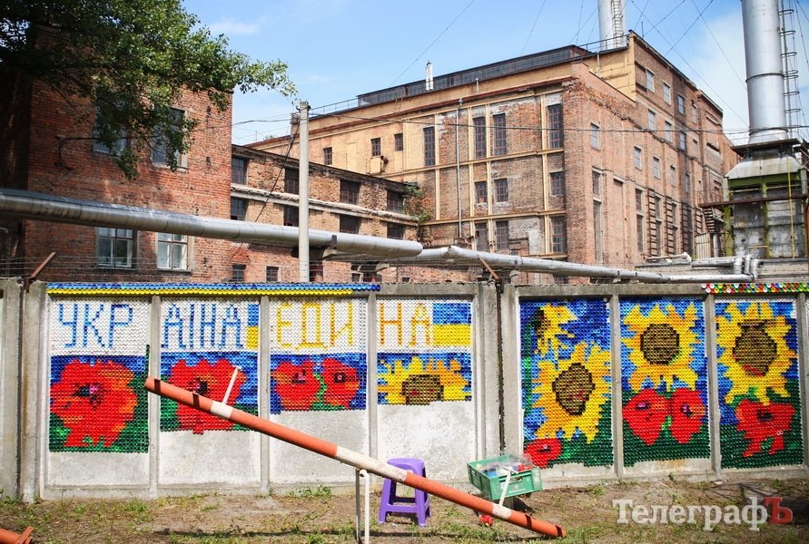 Кременчужанка поддержала пленницу Надежду Савченко … крышечками от бутылок. Во дворе своего дома на большом бетонном заборе, кременчужанка Светлана Бондаренко создала из пластиковых крышек яркое панно в поддержку украинской летчицы, которая находится в плену в России, и единения Украины.