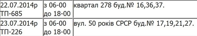 В Кременчуге в связи с ремонтными работами на объектах «Полтаваоблэнерго» возможны отключения по таким адресам: