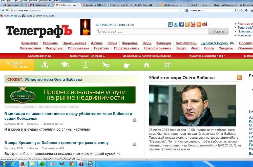 (большинство новостей в сюжете Убийство мэра Олега Бабаева – набрало рекордное количество просмотров за неделю за время существования сайта)