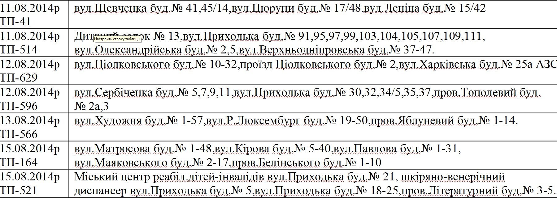 В Кременчуге с 11 по 15 августа 2014г. в связи с проведением ремонтных работ на объектах «Полтаваоблэнерго» возможны отключения электроэнергии с 6.00 до 18.00 по таким адресам: