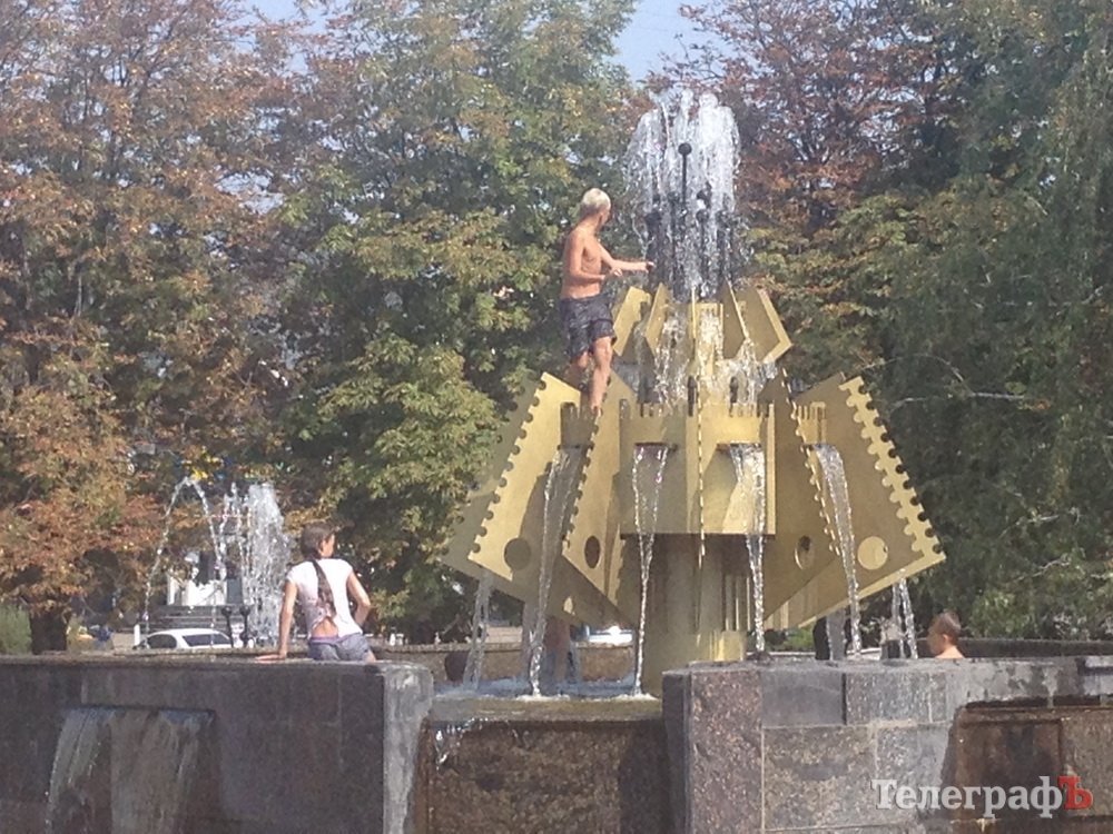 Фонтан у Макдональдса стал местом для купания детей. Вчера, 14 августа, в 14-30 в фонтане купались, играли с мячом и даже учились плавать около десятка мальчиков и девочек.