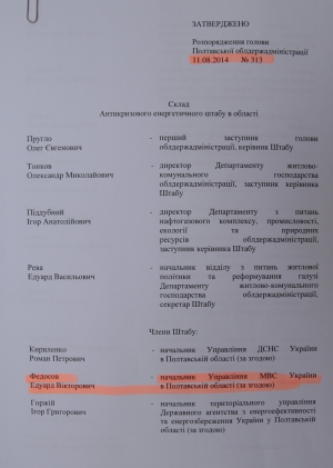 В Полтавской облгосадминистрации до сих пор не знают, кто руководит милицией Полтавской области. Такой вывод можно сделать прочитав недавнее распоряжение губернатора Виктора Бугайчука о создании антикризисного энергетического штаба.