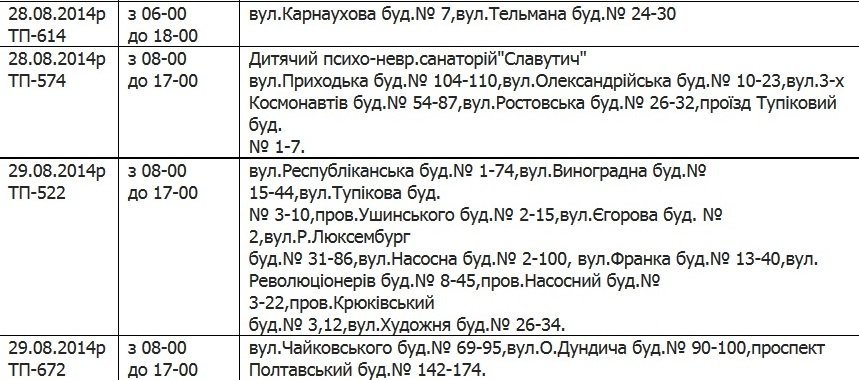 В Кременчуге 28 и 29 августа специалисты «Полтаваоблэнерго» будут проводить ремонтные работы. В связи с этим возможны перебои в электроснабжении по таким адресам: